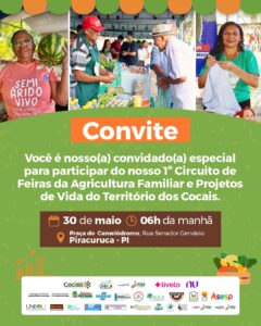 O evento é uma realização do Centro COCAIS, em parceria com o CEEA, Secretaria Municipal de Agricultura de Piracuruca, STRAAF de São João do Arraial, STRAAF de Esperantina, STRAAF de Batalha, UNISOL, EFA Cocais, SEDUC, SAF, ASESP, MIQCB, Conselho Territorial dos Cocais, entre outras instituições parceiras do território.